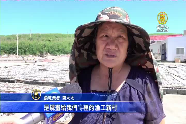 魚乾業者 陳太太:「加工區,這裏有十幾家在做加工,我們還是住在?裡,這裏是屬於井垵地段,漁工新村,是規畫給我們用的漁工新村。」