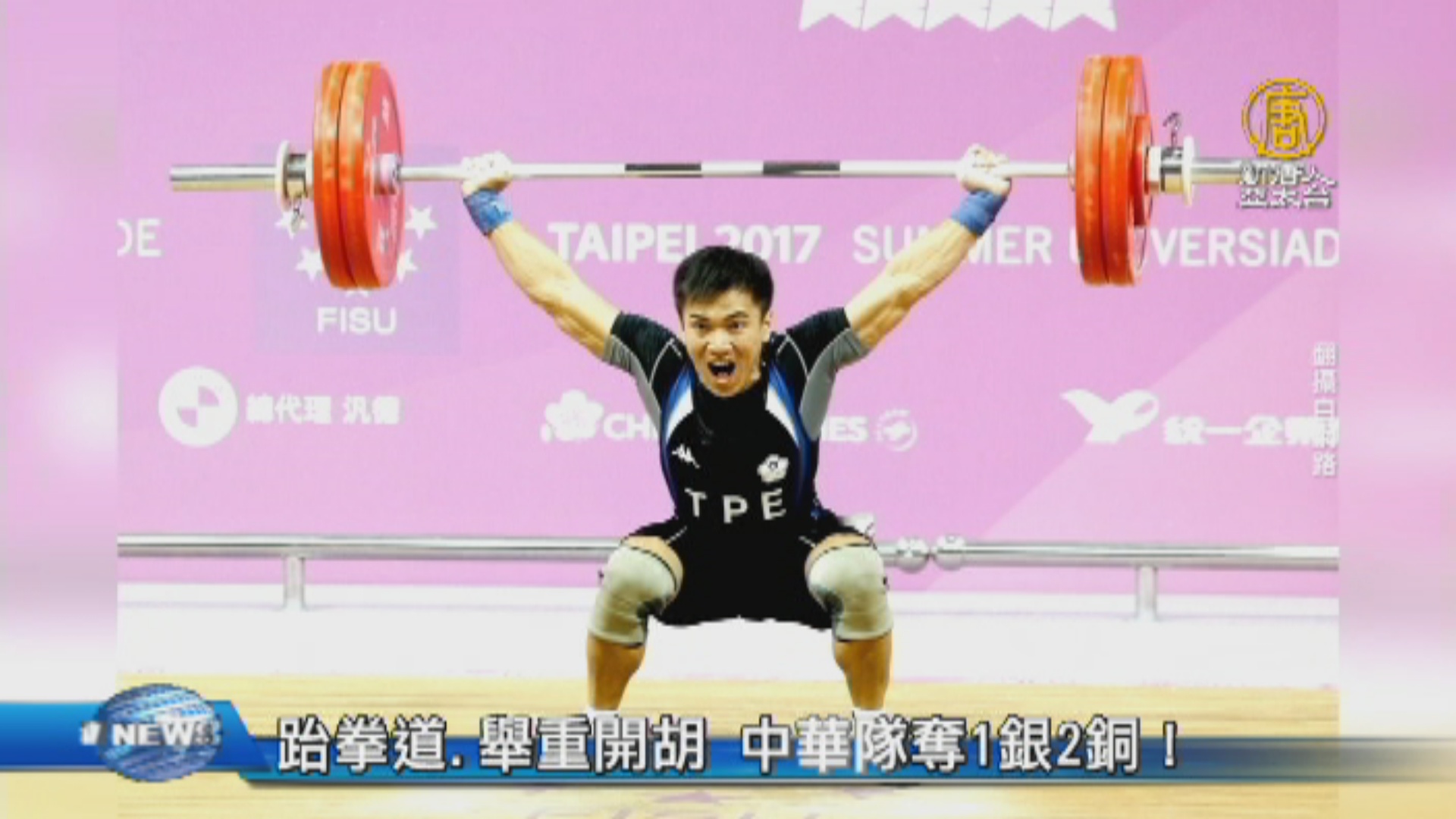 【新唐人亞太台 2017 年 08 月 21 日訊】歡迎回來,接下來,一連串的新聞,帶您聚焦世大運,中華代表隊在世大運的首面獎牌,昨天出爐了,由跆拳道品勢項目,率先摘下一銀一銅!先是跆拳道好手林侃諭,在女子個人品勢項目,以平均7.54分,摘下中華隊本屆世大運第1面銀牌,隨後,男子好手陳建銓,也以平均7.42分,拿下銅牌,雙雙開出好成績。另外,晚間,中華隊也拿到第一面舉重獎牌,高展宏在舉重男子62公斤級,扛住壓力,以抓舉131公斤、挺舉158公斤,總和289公斤,獲得銅牌。
