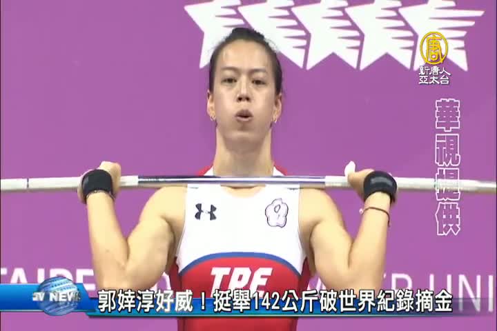 【新唐人亞太台 2017 年 08 月 22 日訊】繼續來關心台北世大運,舉重女子58公斤級比賽,台灣女將郭婞淳,成功摘金,她挺舉還舉出142公斤,打破世界紀錄,加上抓舉107公斤,最後總成績249公斤,擊敗里約奧運金牌泰國女將蘇拉特,奪下金牌,讓她和教練相擁而泣。總統蔡英文,也在臉書恭喜郭婞淳「不只把獎牌留在家,更是在家破世界紀錄」。