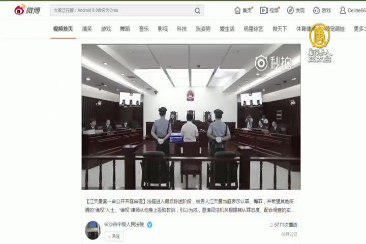 江天勇妻子 金變玲:「現在從微博視頻上看它直播還沒有結束,但是法院的網上整個的庭審的一個相當於報告吧,都已經出來了,說江天勇擇日宣判。所以他們這個是已經編排好了,中共這些(庭審)我都不會相信。」