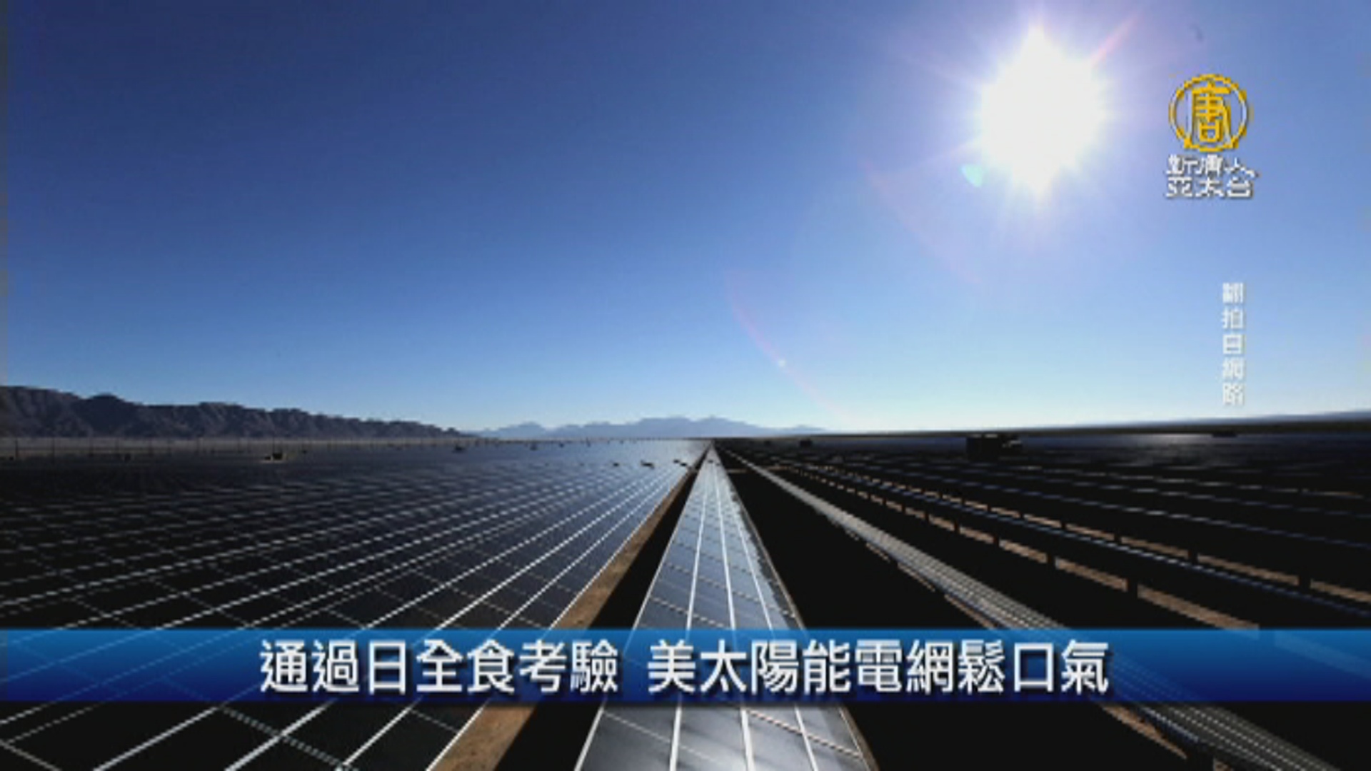 【新唐人亞太台 2017 年 08 月 23 日訊】通過日全食考驗 美太陽能電網鬆口氣