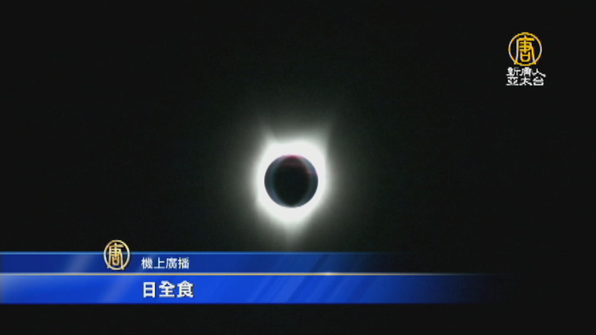 為了欣賞這百年一遇的日全食,不少民眾選擇搭乘飛機,近距離欣賞奇觀。機上廣播,最後倒計時。