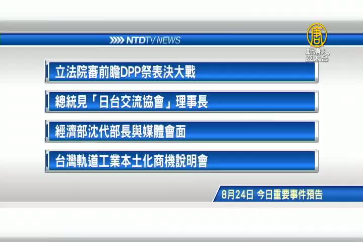 立法院審前瞻,民進黨團計畫進行表決大戰;總統蔡英文,接見「日台交流協會」理事長谷崎泰明;經濟部代理部長沈榮津,與媒體會面;以及台灣軌道工業本土化商機說明會。