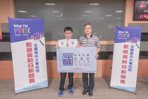 建國中學黃春木老師頒獎給高中組特優獎成功中學陳柏廷(國研院科政中心提供)