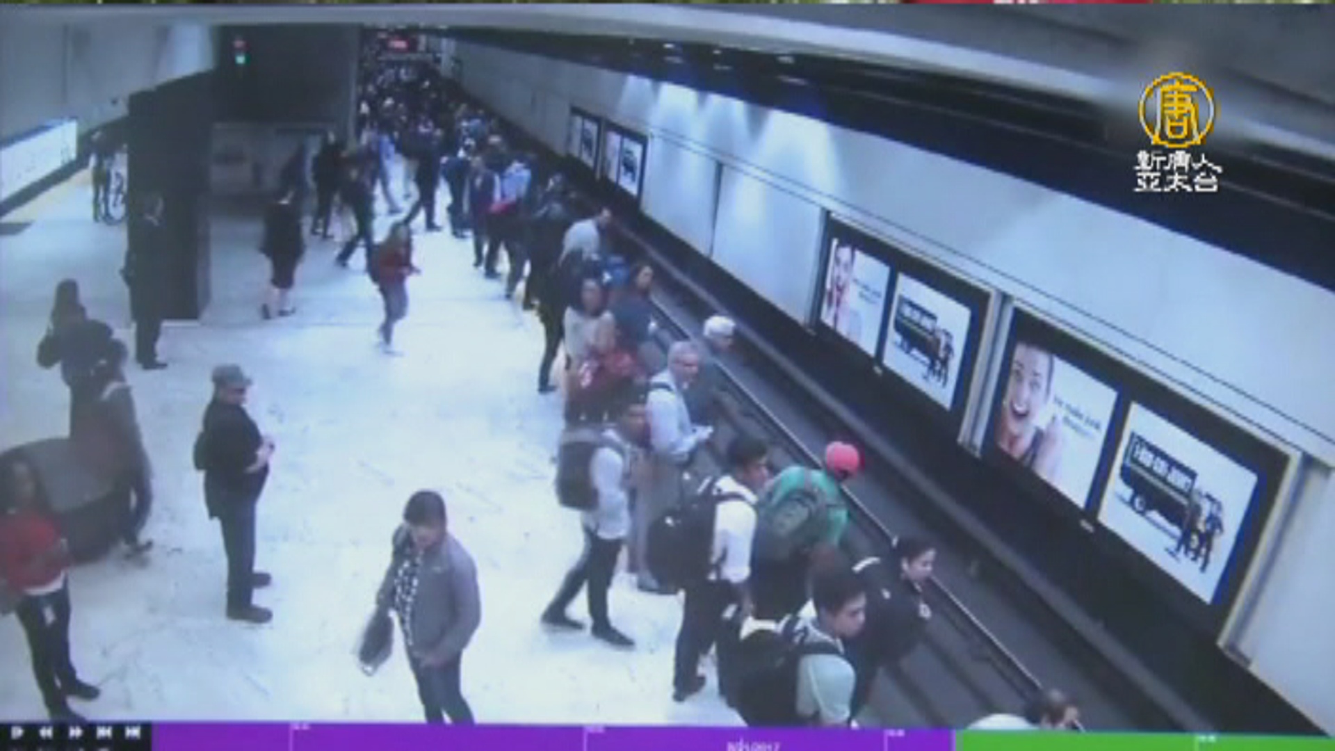 根據BART監控錄像顯示:站台上乘客們在整齊排隊等候列車進站,突然一名男子從BART站台跳入列車軌道,幾名乘客快速反應,奔跑向即將進站的列車,揮動胳膊大聲呼喊,警告列車司機不要進站,其它很多乘客也立即加入其中,一起揮動胳膊警告司機。