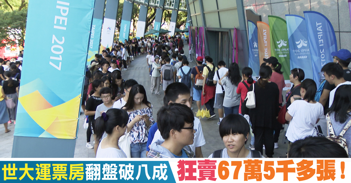【新唐人亞太台 2017 年 08 月 28 日訊】世大運中華隊選手屢創佳績,接連票房飆漲,現在幾乎一票難求。包括排球、舉重、跳水、滑輪溜冰等八個項目,門票都是「完售」。而截止昨天(8月27日)下午,總票房賣出67萬5千多張,突破80%。