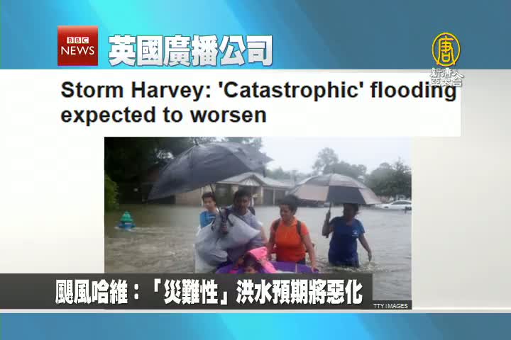 【新唐人亞太台 2017 年 08 月 29 日訊】首先來看到美國華盛頓郵報報導:美國官方警告,洪災將持續,哈維颶風或將迫使三萬人撤離避難。