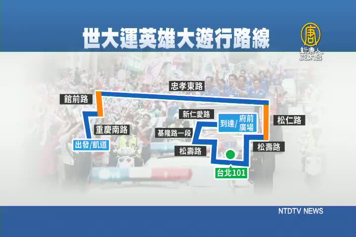 【新唐人亞太台 2017 年 08 月 31 日訊】好,台灣英雄大遊行,今天下午四點登場,近200位世大運台灣代表隊的選手,分別站在25輛吉普車、以及雙層巴士上,接受民眾的喝采車隊一路綿延2.2公里,她們從凱達格蘭大道出發,行經館前路商圈,沿忠孝東路遊行至松仁路,繞行台北101後,最後在五點半左右,抵達台北市政府前廣場。