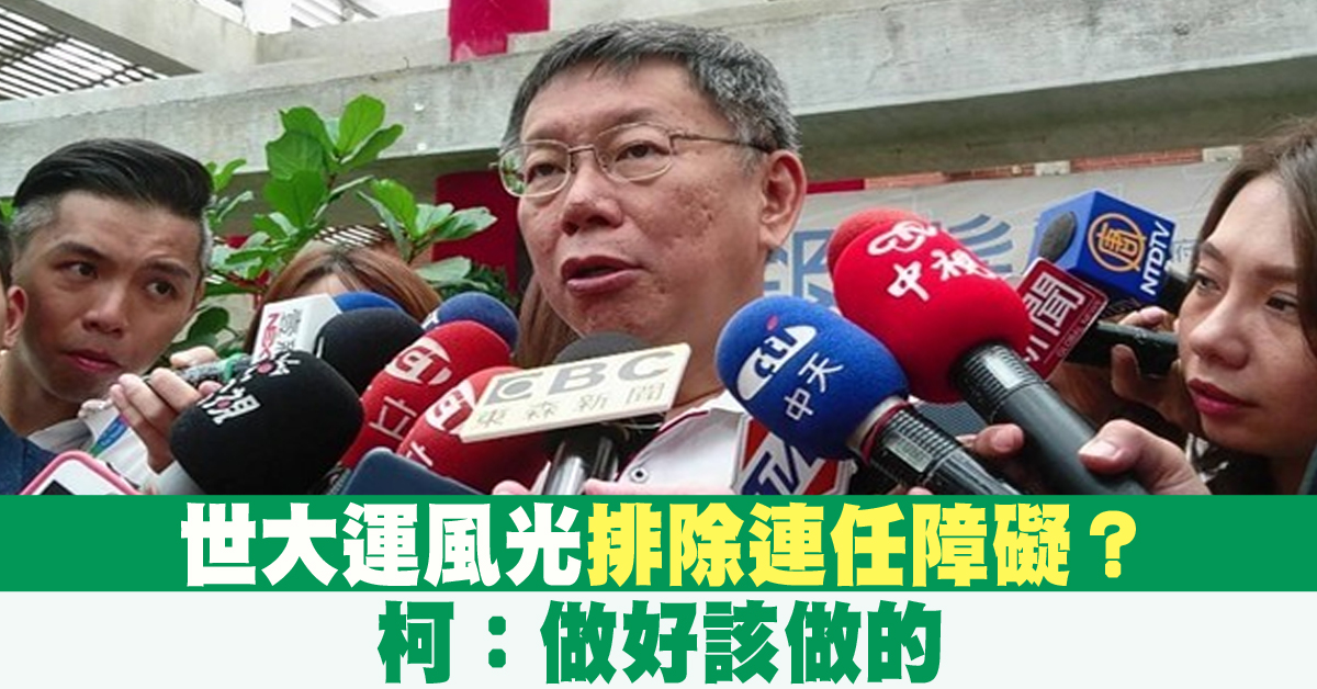 【新唐人亞太台 2017 年 08 月 31 日訊】歡迎回來。世大運昨晚風光落幕,從一開始不被看好,到最後好評如潮,連帶讓台北市長柯文哲的聲勢,水漲船高,就有平面媒體認為,世大運圓滿落幕,無疑為柯文哲掃除連任障礙,但柯文哲說距離選舉還很早,還是先做好每天的事情再說。