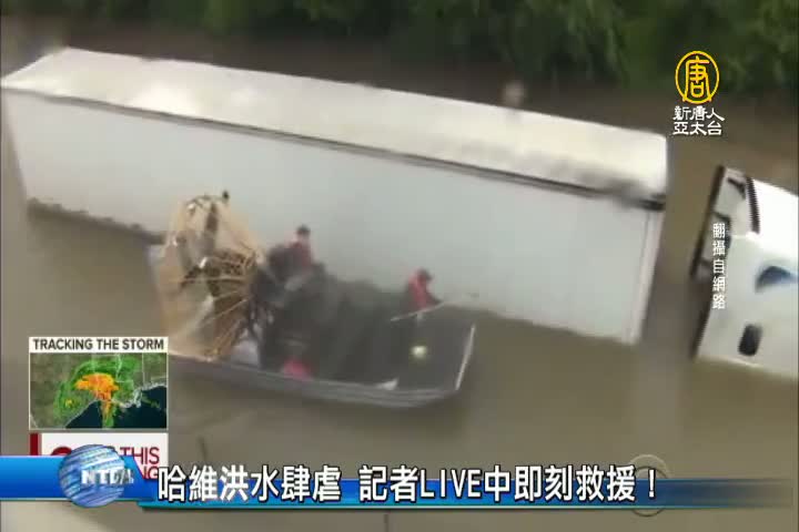 哈維洪水肆虐 記者LIVE中即刻救援!
