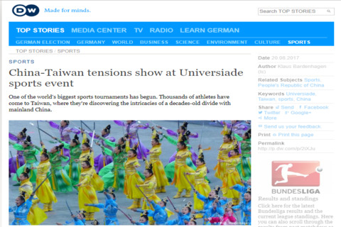 德國之聲報導中國隊伍未參與世大運開幕。(臺北市政府觀光傳播局提供))