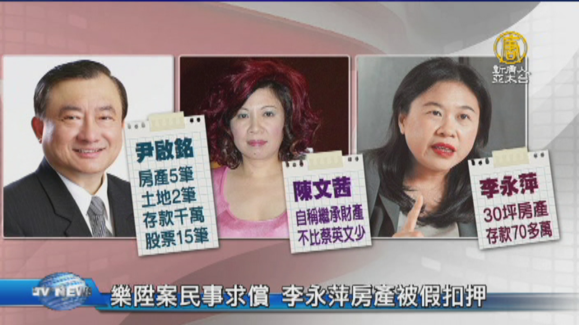 【新唐人亞太台 2017 年 09 月 02 日訊】樂陞前董事長許金龍仍在押,但他和其他獨立董事,該負的民事責任也持續訴訟中,投資人保護中心就向法院遞狀,針對獨董尹啟銘、陳文茜、李永萍等人提出民事求償。其中李永萍雖然資產最少,但傳出他疑似脫產,士林地方法院已經扣押李永萍名下位於內湖的一戶房產。