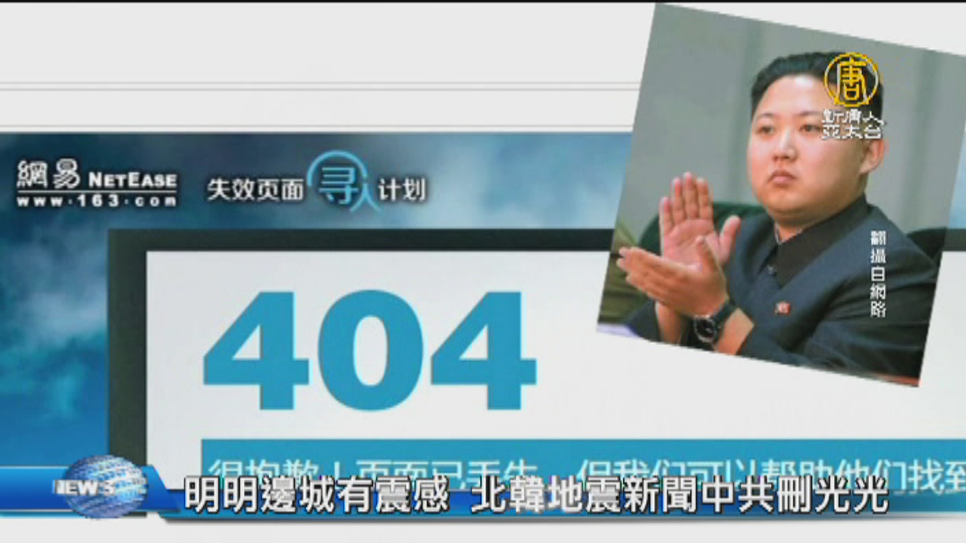 【新唐人亞太台 2017 年 09 月 03 日訊】好,北韓中午發生規模6.3強震,但震源深度卻是0,最後證實是核子試驗引發的人工地震,就連鄰近的中國吉林、長春、瀋陽等城市,也能感受到明顯震動。原本中國各主要新聞網站都有報導,可是到了下午,關於這次核爆的新聞,都「被消失」,只顯示「404」的失效頁面。連微博都禁止搜尋「氫彈」字眼。目前只剩下中共外交部,強烈譴責北韓的消息。