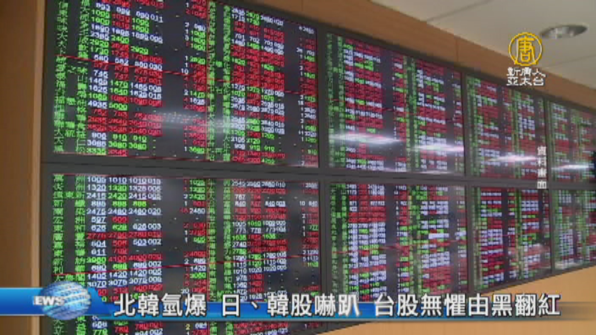 【新唐人亞太台 2017 年 09 月 04 日訊】北韓氫彈試爆,東北亞局勢再度緊張。亞股今天早盤表現疲弱,日本、南韓及香港股市,都是開低走低,日股盤中下挫179點,跌幅將近1%,韓國股市也下跌19.16點,而台股市場,則是相對冷靜,台股早盤小幅開低之後,10 點再度攻回平盤,多頭氣勢強勁下,指數向上挑戰10600點,主力為光學鏡頭廠商,包括股王大立光,以及玉晶光,今國光,亞光都上漲。另外,亞洲避險資產一如預期走高,黃金逼近 1340 美元,日元也同步上漲。