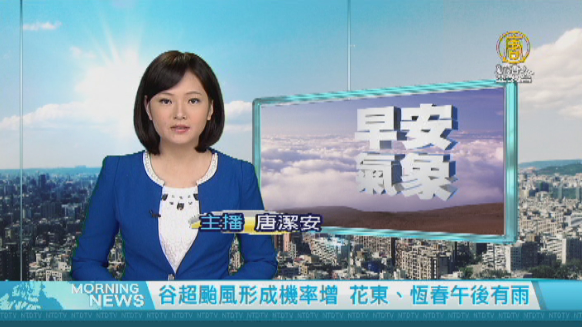 【新唐人亞太台 2017 年 09 月 06 日訊】歡迎您收看9月6日的早安新唐人,我是唐潔安。先來帶您關心今天的天氣情況。今天大多是多雲到晴的好天氣,花東地區與恆春半島可能下短暫陣雨,午後山區有局部雷陣雨。大台北地區高溫有可能達到36度,須多補充水分慎防中暑。另外,在巴士海峽的熱帶性低氣壓結構完整,形成17號颱風谷超的機率,大為增加。帶您一起來看到國際媒體重要訊息。