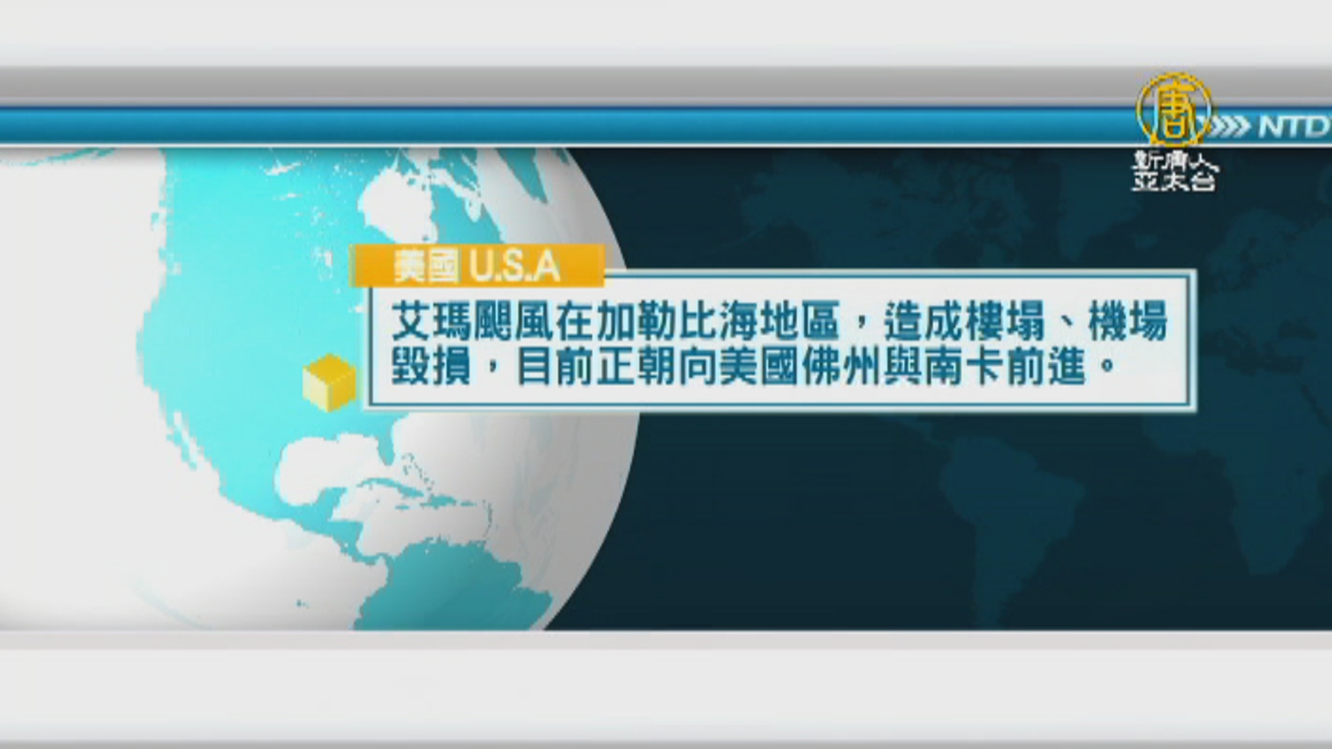 艾瑪颶風在加勒比海地區,造成樓塌、機場毀損,目前正朝向美國佛州與南卡前進。