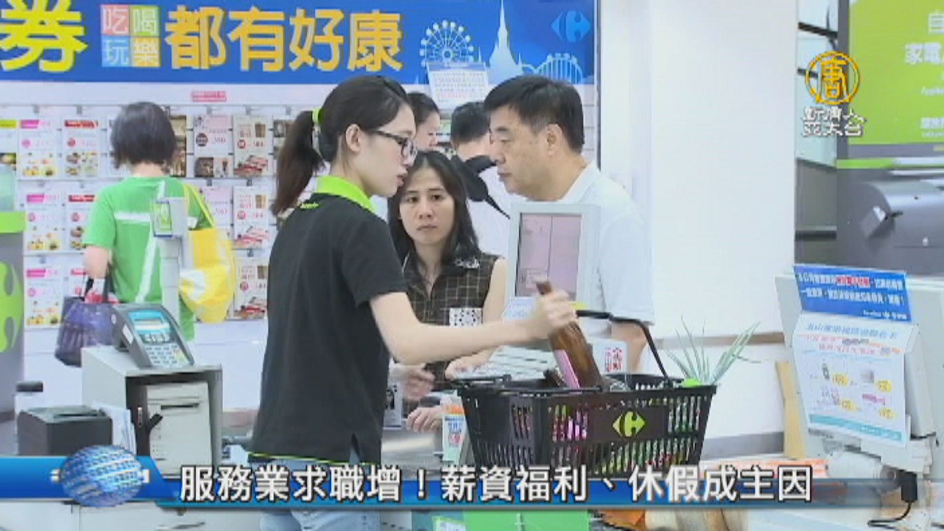 【新唐人亞太台 2017 年 09 月 11 日訊】服務業在台灣越來越搶手,根據人力銀行調查指出,2017年八月求職者,向服務業投出履歷的次數,高達40多萬次,相比去年同期,激升了29個百分點。