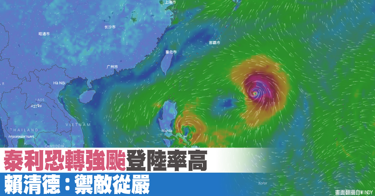 泰利恐轉強颱登陸率高 賴清德:禦敵從嚴