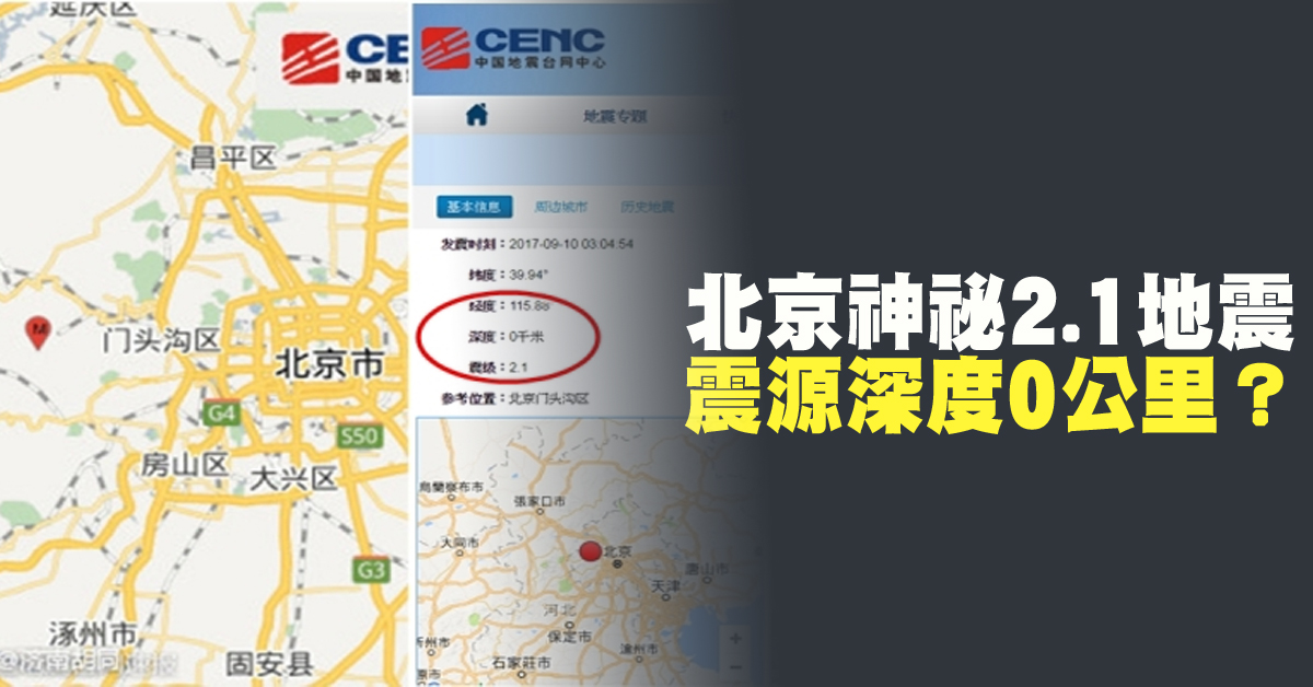 北京神祕2.1地震 「震源深度0公里」?
