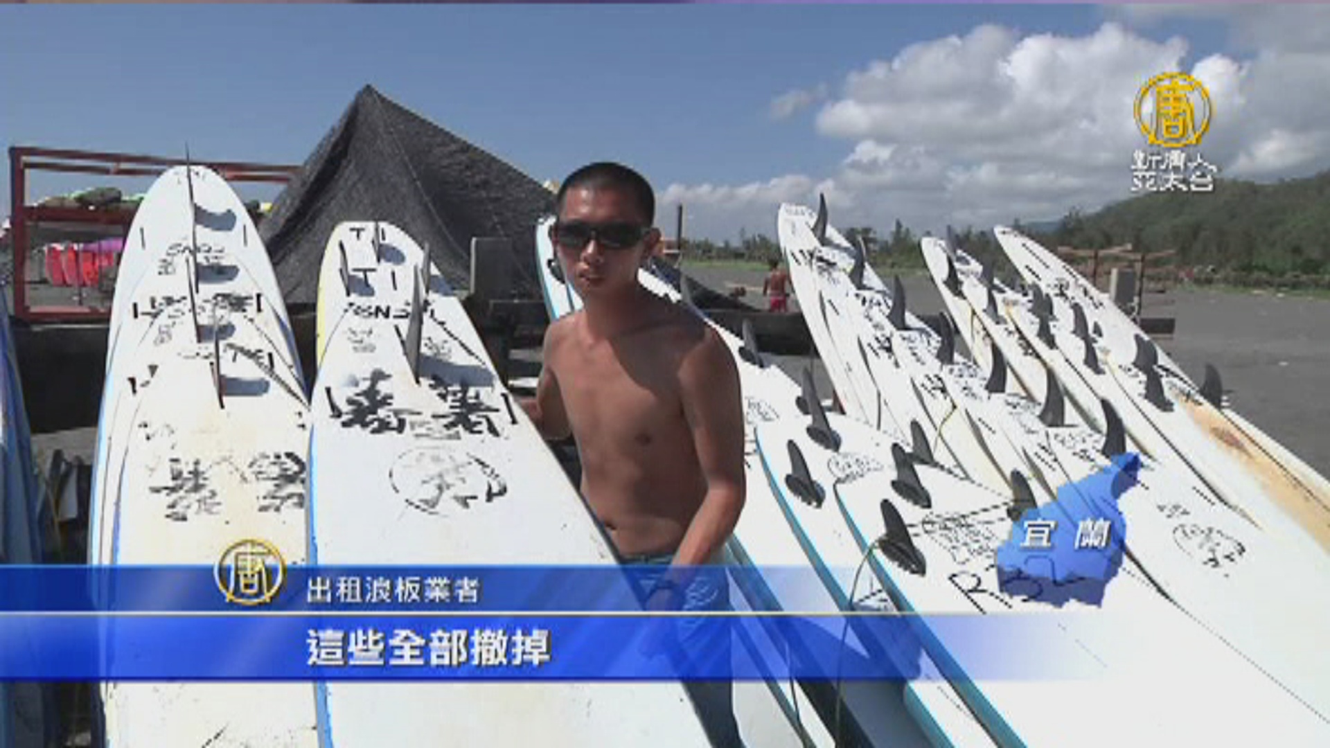 出租浪板業者:「這些全部撤掉,(把這些浪板全部撤掉),海灘上看到的東西全部撤掉。」