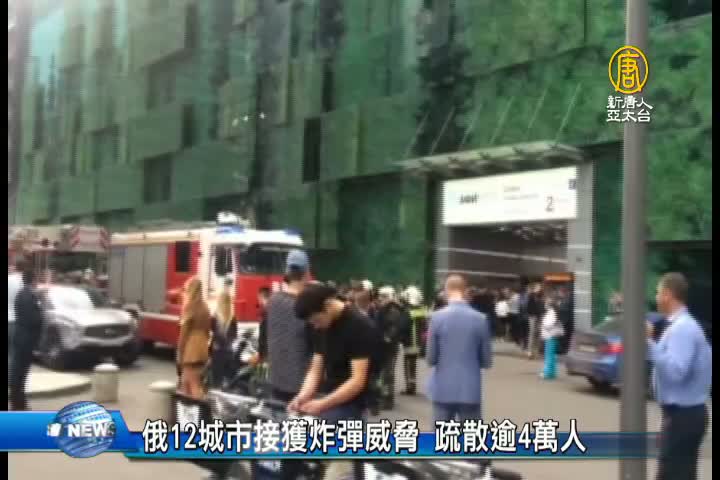 【新唐人亞太台 2017 年 09 月 14 日訊】早安新唐人,先帶您來關心國際消息。俄羅斯警方從星期天以來,接獲來自12個城市的大量匿名炸彈威脅,目標指向多達200個公共場所。透過畫面您可以看到,包含購物中心、火車站、和學校,俄國警方已經進行預防性措施,總共緊急疏散4萬5千個民眾。俄羅斯今年以來遭到多起炸彈恐怖攻擊,其中4月在聖彼德堡的炸彈攻擊造成16人罹難與數十人受傷。