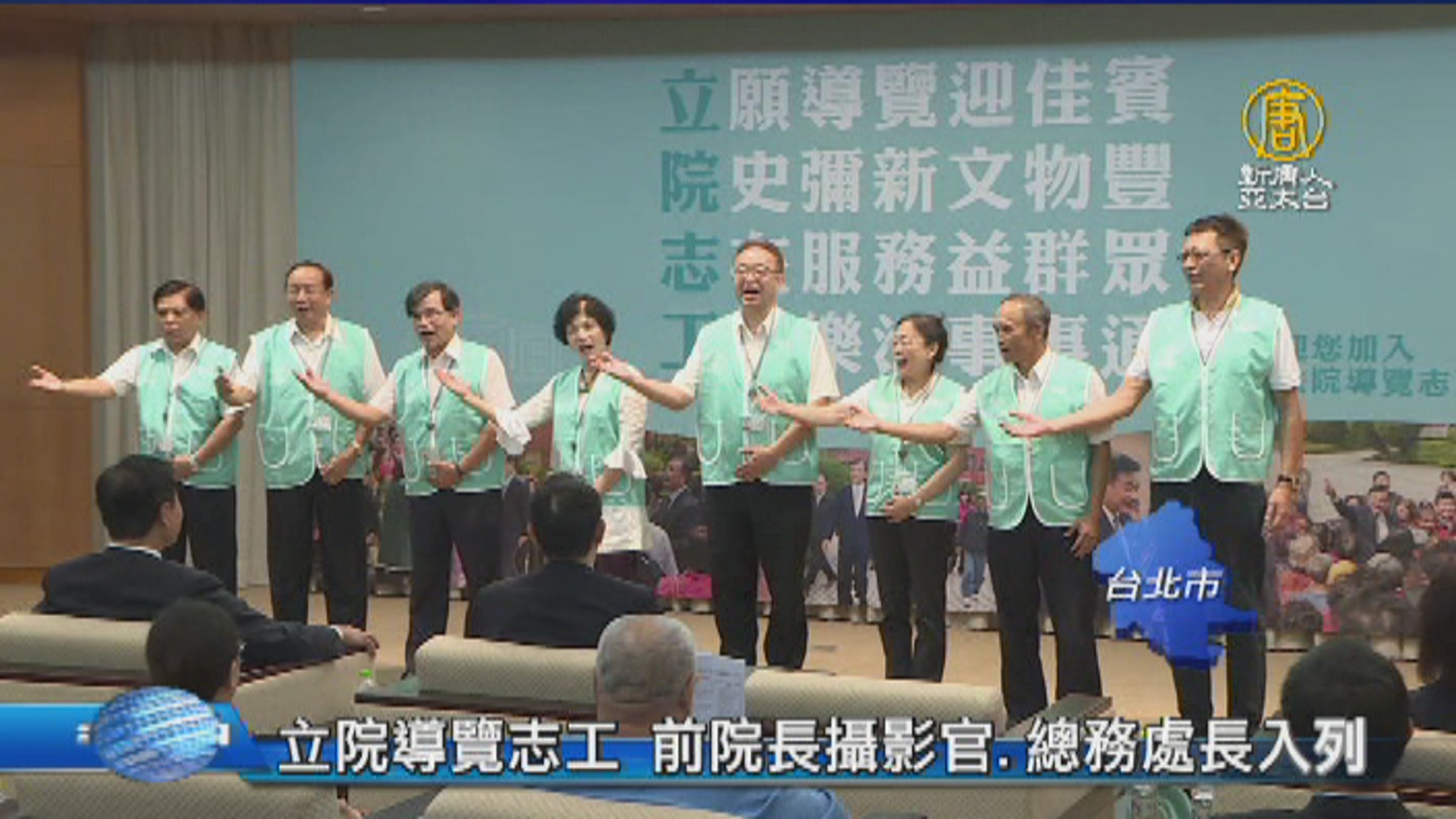 【新唐人亞太台 2017 年 09 月 14 日訊】立法院跟總統府一樣,是不少民眾參訪的公家單位,2016年參觀立法院人數高達5萬人,負責接待介紹的人員過去由立法院工作人員接待,院方向總統府取經,首度成立導覽志工,第一批志工中,不僅有過去立法院長的攝影官,還有會計師事務所老闆。