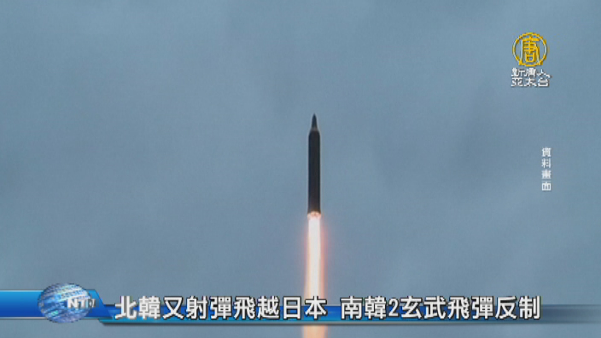 【新唐人亞太台 2017 年 09 月 15 日訊】再來看到,今天在國際間,另一個重要消息。北韓,近期挑釁動作頻頻,在上個月底 發射一枚飛彈,這個月初進行核試驗之後,今天上午,又往朝鮮半島東部海域,發射一枚中遠程彈道飛彈「火星12型」,飛越日本上空。而這次南韓也不甘示弱,第一時間就發射兩枚 玄武飛彈,進行反制。