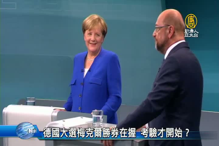 【新唐人亞太台 2017 年 09 月 16 日訊】再一個星期,24日,德國大選就要登場,現任總理梅克爾,力拚4連霸,可以說是勝券在握,不過由於國會眾多席次,可能被小黨瓜分,再加上開放難民所延伸的問題,梅克爾當選之後的挑戰,其實一點都不小。
