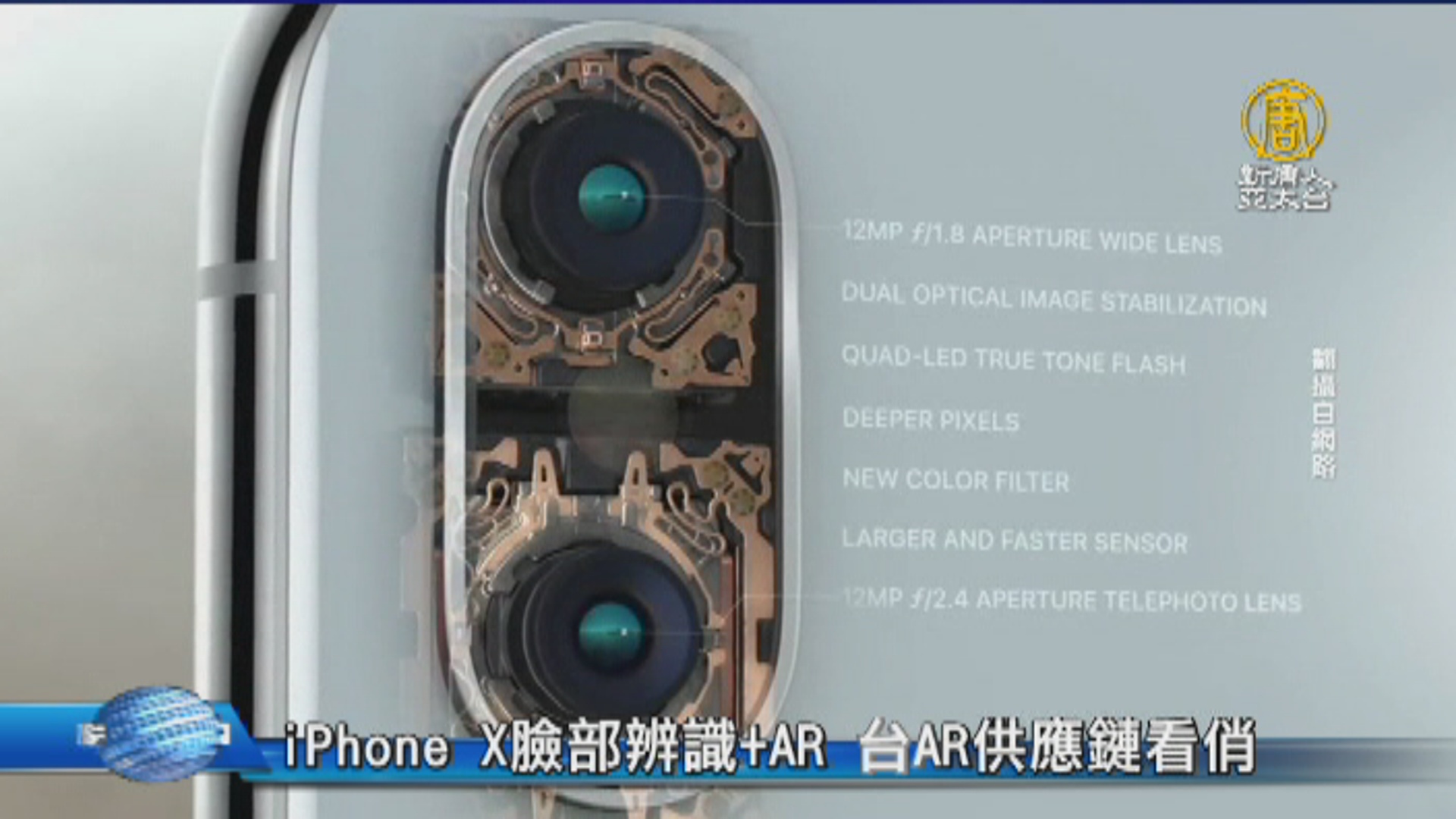 【新唐人亞太台 2017 年 09 月 16 日訊】蘋果公司十周年紀念款機種iPhone X,再度讓擴增實境亮相,與臉部辨識功能結合,將擴增實境正式登陸手機平台,市場看好將帶動AR相關概念股,台供應鏈聲勢,持續看俏。