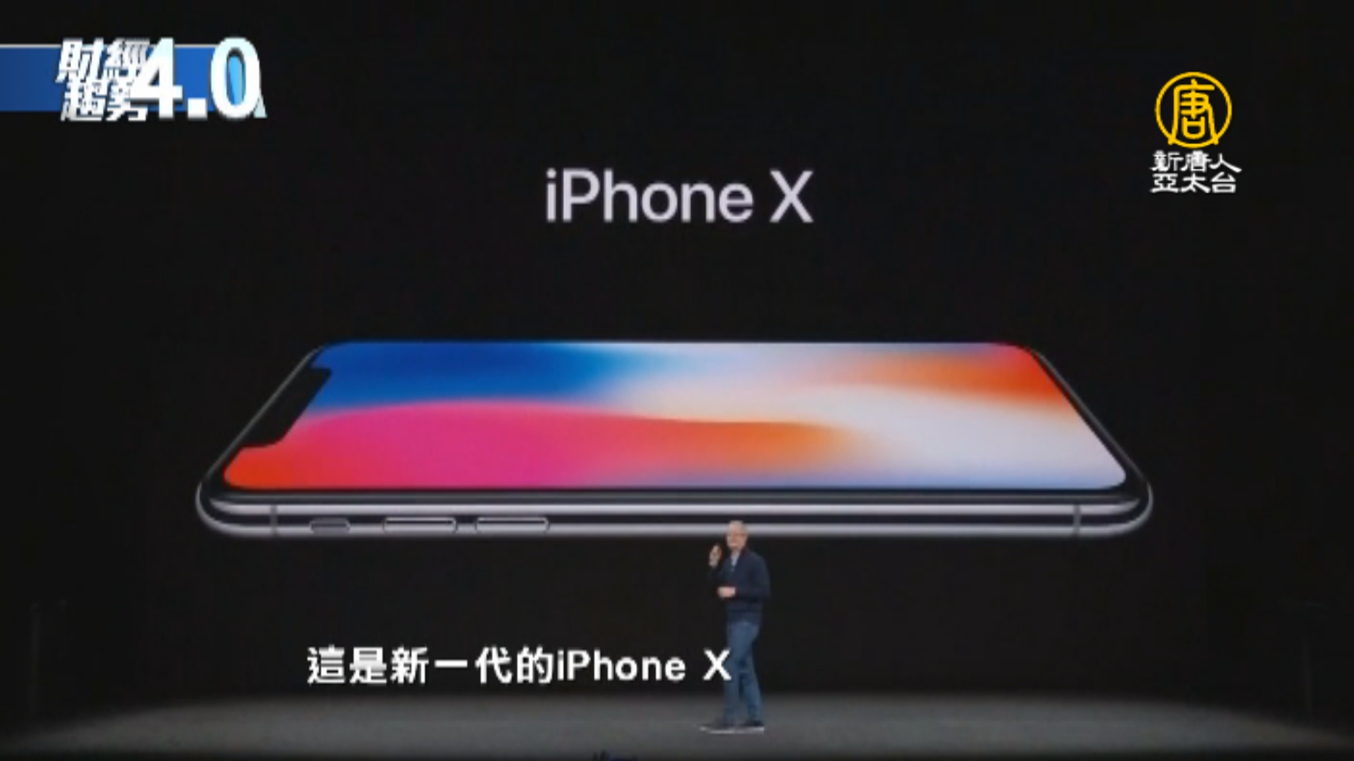 【新唐人亞太台 2017 年 09 月 17 日訊】關鍵時刻,帶您迅速掌握潮流趨勢,歡迎您收看財經趨勢4.0,我是沈唯同。首先來看到,蘋果公司,這週二,在矽谷新總部,舉行10週年新品發表會,外界矚目的iPhone X,壓軸登場,包含直立雙鏡頭、無實體Home鍵、以及採用名為「Face ID」的人臉解鎖等全新設計,都是第一次,運用在iPhone的產品中。
