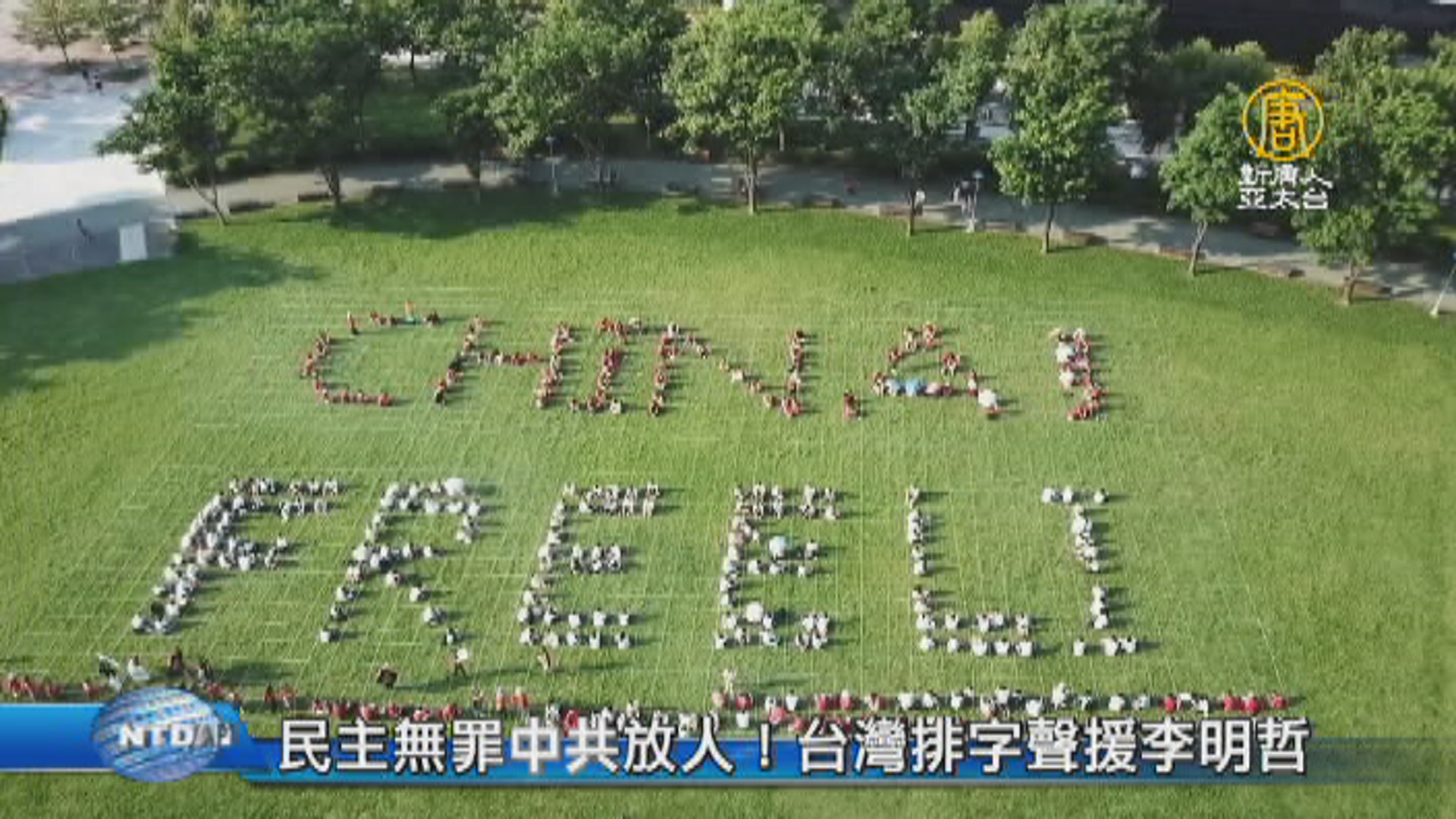 【新唐人亞太台 2017 年 09 月 17 日訊】NGO工作者、台灣公民李明哲,遭中共以「顛覆國家政權罪」逮捕超過180天,上週在中共法庭公開「被認罪」,李明哲救援大隊今天舉辦排字活動,超過350位民眾參與,排出「CHINA! FREE LI」字樣,高喊民主無罪,要求中共釋放李明哲。
