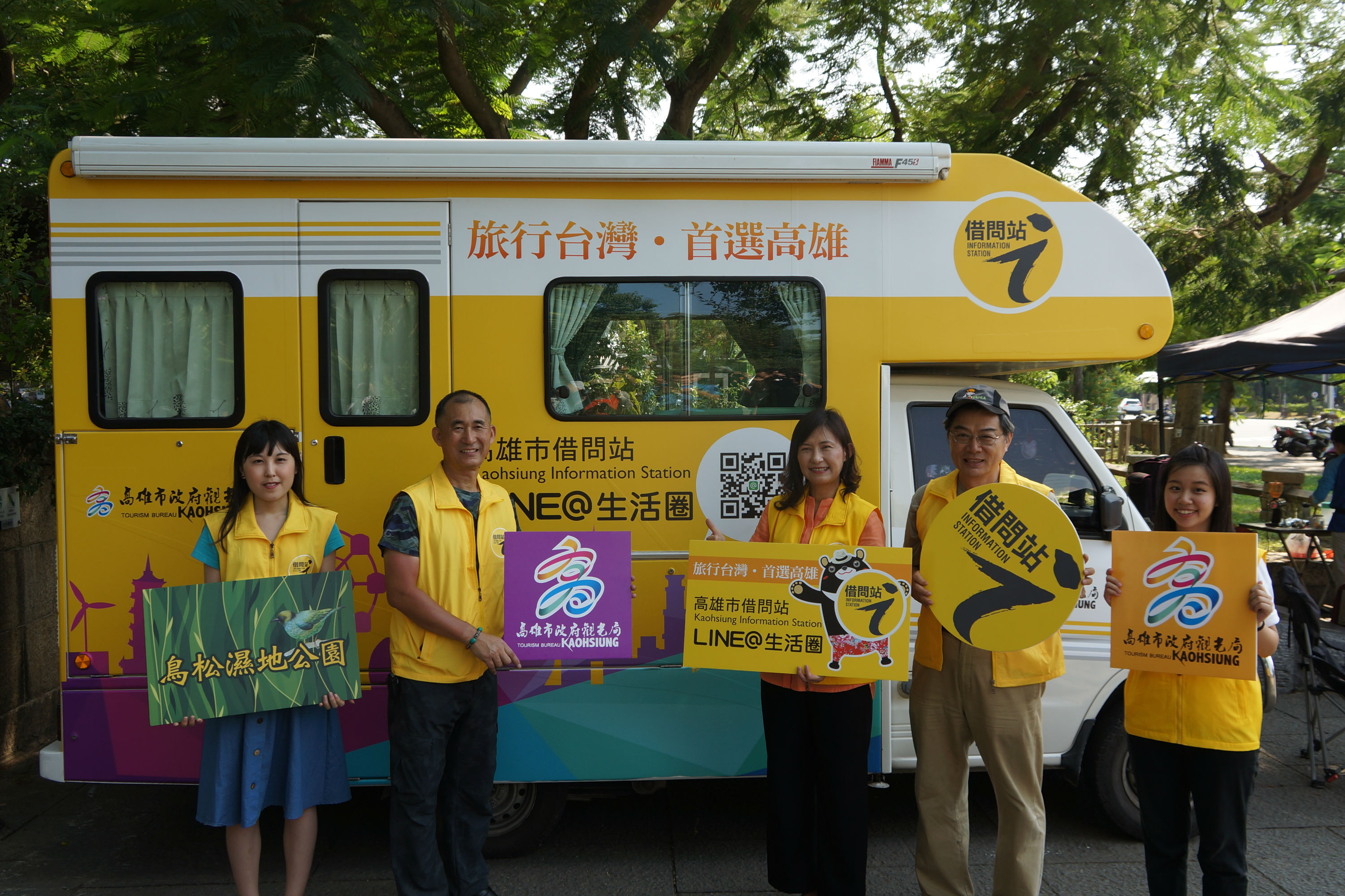 高雄市借問站LINE@生活圈及行動旅服車,首站選在鳥松濕地正式啟用。(圖/高雄市觀光局提供)