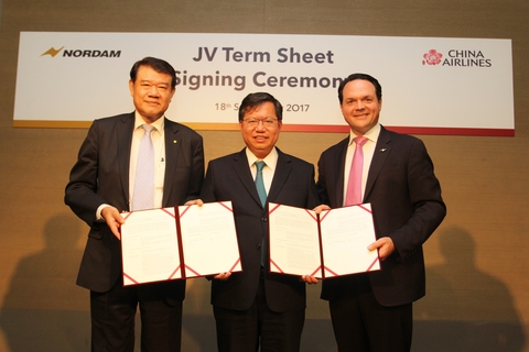 華航董事長何煖軒表示,華航今年3月3日與NORDAM簽署合作意向書,今天更進一步簽署商業條款(Term Sheet),將加速雙方合資合約的簽署。華航表示,修護工廠與NORDAM為長期合作維修夥伴關係,經過多次磋商決議成立合資公司。未來除了滿足華航自有機隊發動機反推力器維修需求之外,也將提升華航修護工廠在複合材料的維修能力,例如發動機鼻頭罩、尾端消音器等項目並促進國家航太產業發展。