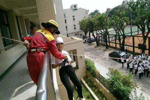 【新唐人亞太台 2017 年 09 月 21 日訊】為強化防災教育,嘉義女中今天(21日)上午實施地震避難掩護演練,在嘉義市政府消防局義勇特種搜救隊的教育宣導與協助,學生實地體驗防震、避震和破壞器材,以及高處逃生等各項消防常識,過程逼真。