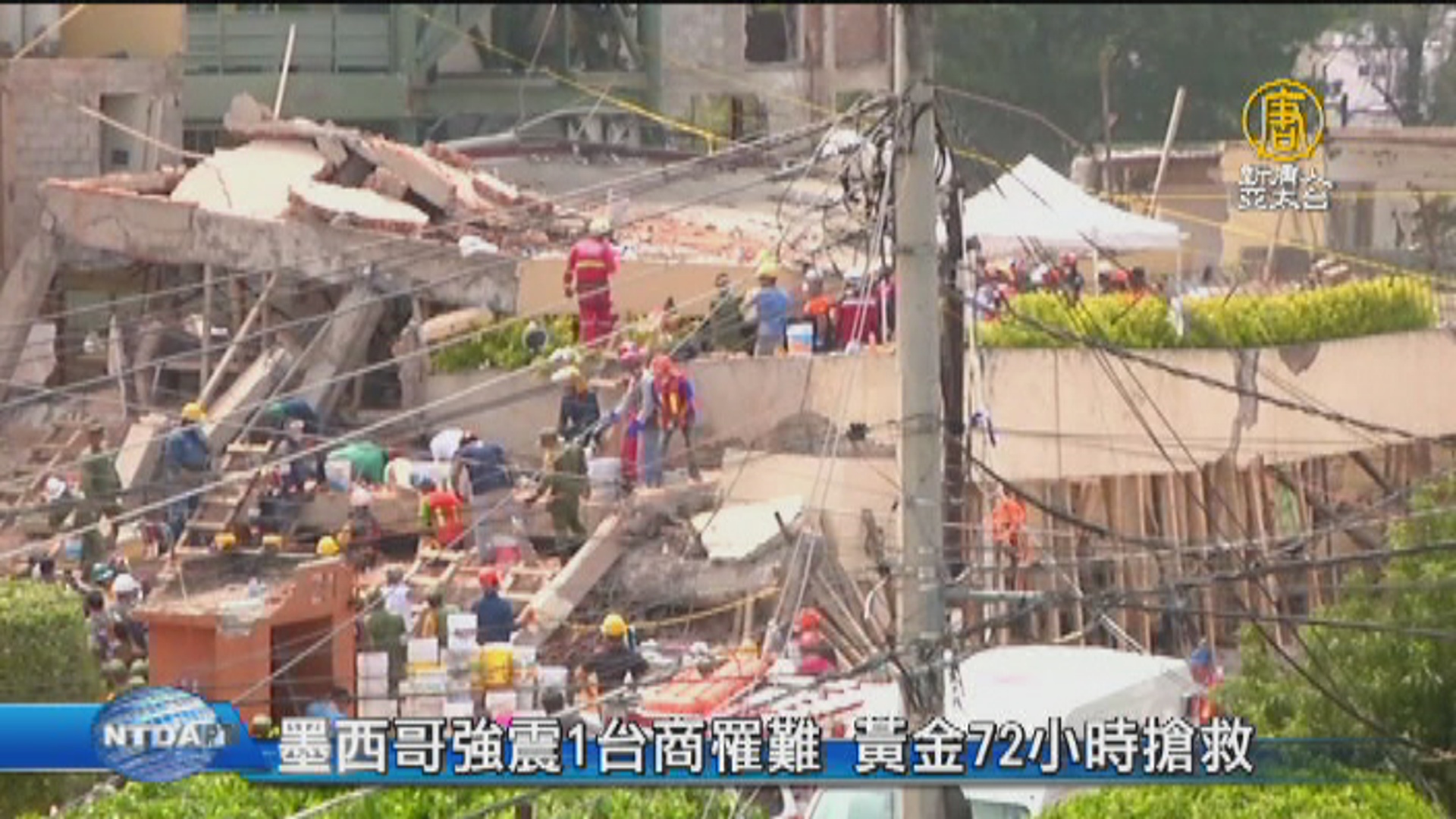 【新唐人亞太台 2017 年 09 月 21 日訊】新聞首先,持續關心,墨西哥強震的消息,目前已經有超過200人罹難,救援人員把握黃金72小時,仍持續搜救困在瓦礫堆底下的人。另外,台灣有5位僑民,受困在陳姓台商的倒塌大樓中,其中一位受困者王家妤,已經被尋獲,其他人還在持續搜救中 台商林家慶,則已經證實罹難。