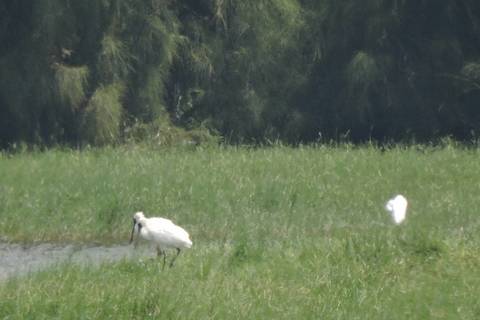 林務局嘉義林區管理處表示, 17日上午10點多,林務局嘉義林區管理處培訓認證的鰲鼓濕地森林園區解說員黃月英、陳文賢巡守濕地時,看到二隻黑面琵鷺在西堤水域後方的草澤地休息,這是今年秋天鰲鼓濕地首次的黑面琵鷺發現紀錄。