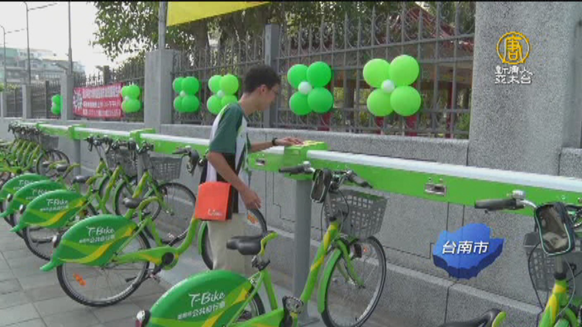 【新唐人亞太台 2017 年 09 月 22 日訊】今天是(9/220世界無車日,帶您來看,台南崑山科大,捐贈公共自行車T-Bike租賃站,今(22)天啟用。
