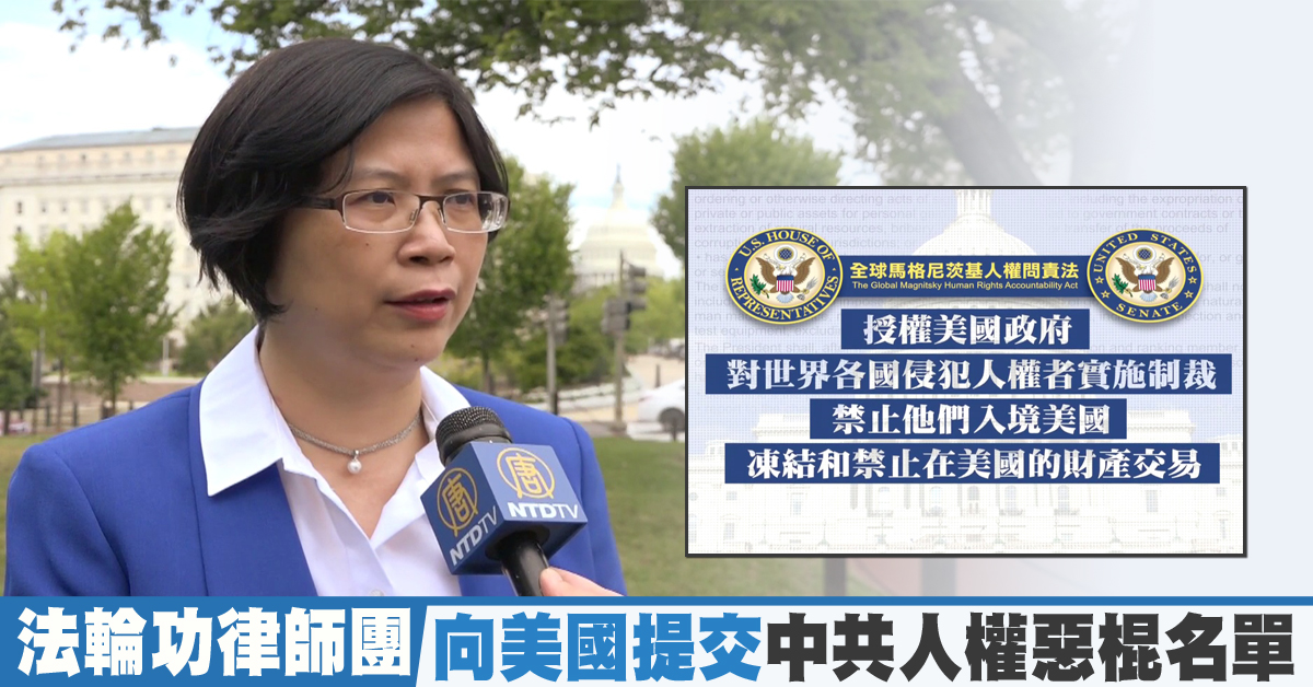 台灣法輪功人權律師團發言人 朱婉琪﹕「我代表律師團將這十多年來在海外控告嚴重參與迫害法輪功的中共官員名單﹐提交給國務院等相關的美國政府單位﹐(要求)將他們放在全球馬格尼茨基的人權問責法案上面﹐禁止他們將來入境美國。如果他們在美國有財產的話應該予以凍結。」