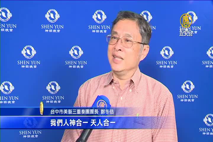 台中市美藝三重奏團團長 鄭冬佶:「神韻這個名字取的非常好,有那韻味有神的味道,我們人神合一,天人合一。有很好的交響樂團的架構,然後又溶入我們的琵琶,我們的二胡,我們的聲樂,男女高音,還有豎琴,還有很多打擊樂器,還有當然音樂語法上面,也是有加入我們五聲音階,還有強調節奏,興奮的,你看每一首曲子都不會很長,就是讓我們大家能夠感受這種氣氛。」