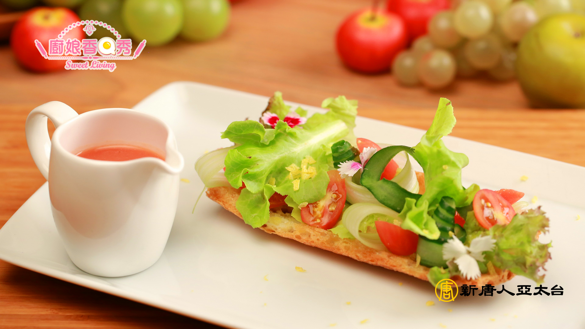 冷湯偏向以蔬果烹煮,口感清爽開胃。來賓林玉罡主廚提醒好吃的美食很注重細節。他分享的西班牙冷湯,顚覆你對冷湯的看法,首先要用健康蔬果醃製24小時,而且食材口味重的一定要切細,且量不要太多。煎豬肉楓糖培根起士漢堡,用中小火煎漢堡肉約二分鐘才要再翻面,看見八分熟時,千萬不要用鏟子去壓肉。小火熱鍋煎培根,再淋上楓糖漿。