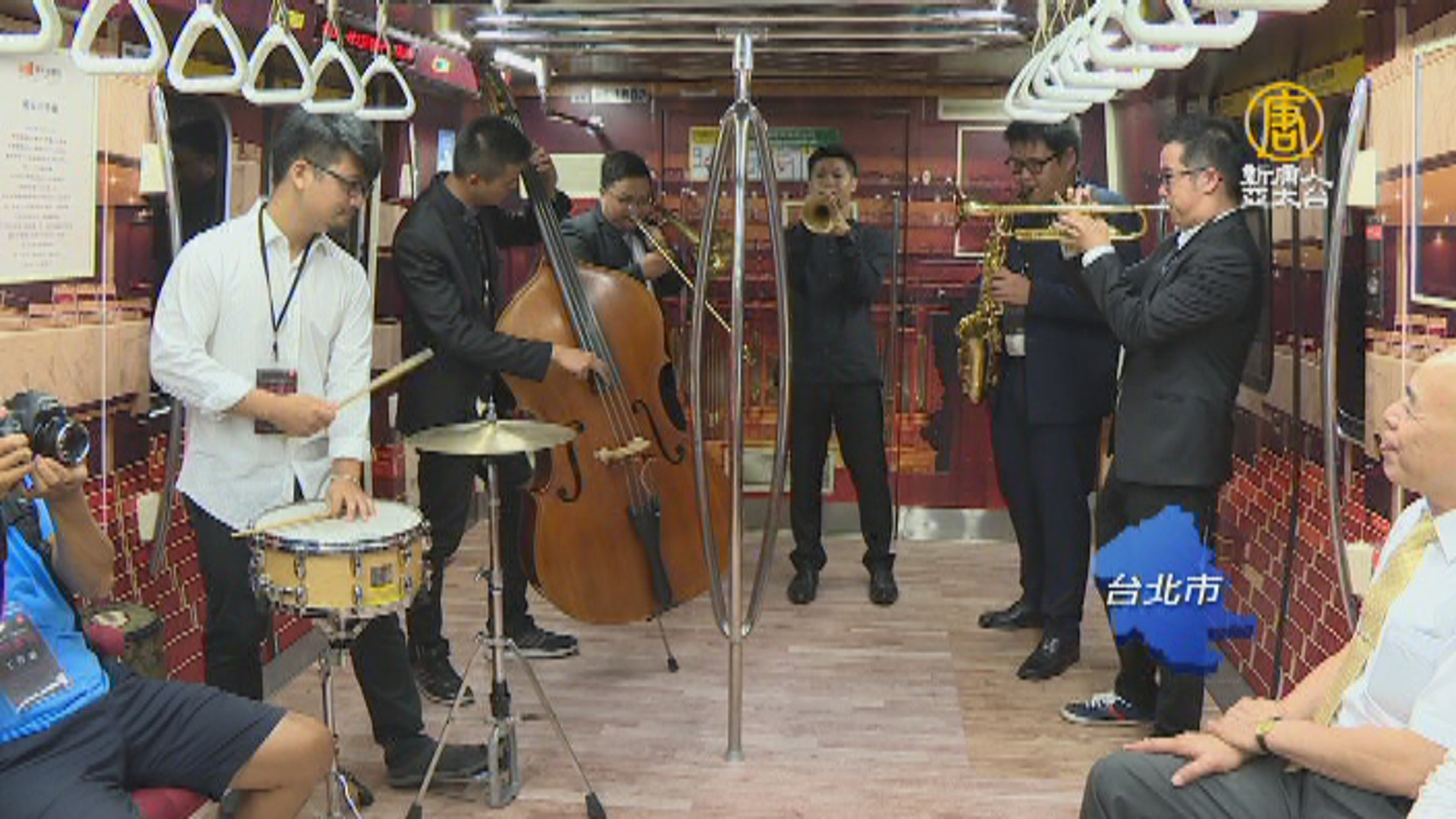 【新唐人亞太台 2017 年 10 月 03 日訊】自從世大運在捷運車廂,打造出「游泳池水道」宣傳後,很多活動跟比賽都會在車廂裡打造場景來宣傳,這回捷運再度大變身,不是只有牆面設計,國家兩廳院,現在把車廂變成了行動藝文列車,連第一節車廂的藍色椅子,都換成紅絨布座椅。