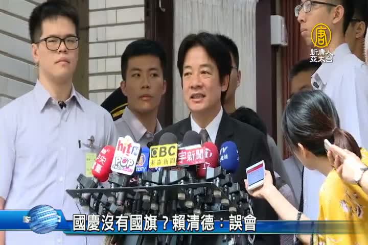 【新唐人亞太台 2017 年 10 月 03 日訊】歡迎回來,雙十國慶典禮設計,有輿論質疑迴避國旗與國號。行政院長賴清德今天(3日)受訪時說,這是誤會。
