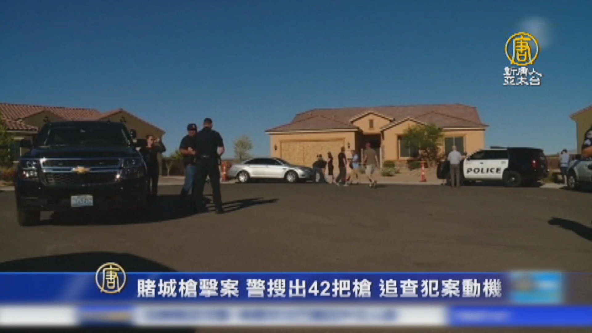 【新唐人亞太台 2017 年 10 月 04 日訊】再來關心,美國有史以來最嚴重的槍擊案。目前,遇難人數高達59人,受傷人數增加到530人。今天,歹徒行兇地點的畫面曝光,警方搜出42把槍枝,正釐清槍手的犯案動機。