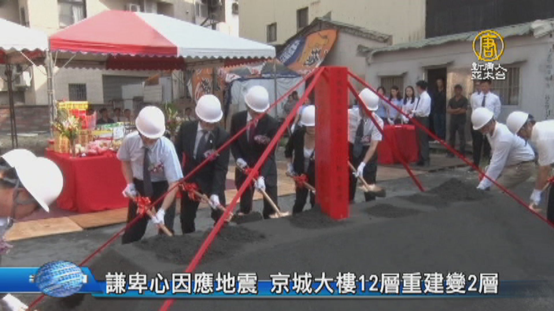 【新唐人亞太台 2017 年 10 月 05 日訊】去年2月6號台南大地震,京城銀行台南新化分行,被震倒傾斜,後來被拆除,今天舉行原地重建動土典禮。