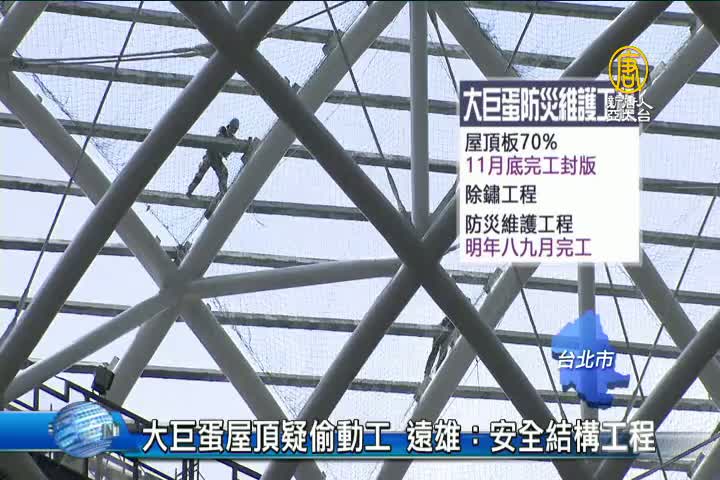 【新唐人亞太台 2017 年 10 月 05 日訊】歡迎回來。延宕2年多的大巨蛋,傳出屋頂越蓋越大,似乎有偷偷動工的嫌疑,今天(5日)台北市議員直接殺進大巨蛋勘查,遠雄也反駁,說是為了安全結構維護,才來做除鏽工程和屋頂板,根本沒有私下復工。