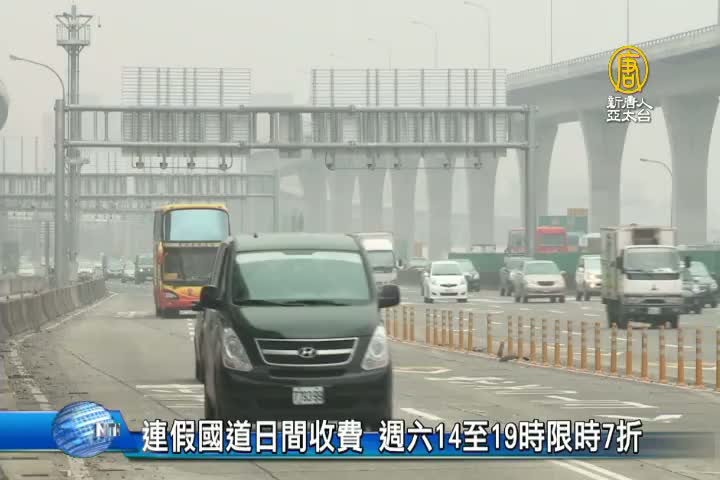 【新唐人亞太台 2017 年 10 月 06 日訊】午報頭條,先來關心,明天開始是4天的國慶連續假期,高公局預測,假期第一天,國道有16個路段最容易塞車,其中包括「楊梅-頭份南下路段」、「王田-埔鹽系統南下路段」、「台中-豐原北上路段」,建議民眾出門前先了解路況。另外,高公局首次在連假首、尾兩天,試辦日間離峰時段,共5個小時通行費打7折,明天實施時間是下午2點到晚上7點,估計可分散尖峰時段,約 7%的車流量。