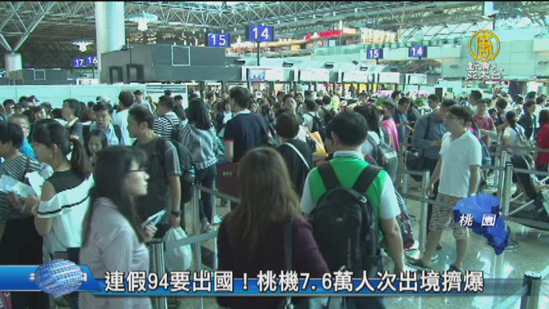【新唐人亞太台 2017 年 10 月 07 日訊】好,來看到,國慶4天連假,今天登場,大批民眾趕著出國來趟小旅行,一早桃園機場航廈,就被瞬間爆量的旅客擠爆,從航空公司報到櫃台、到入關驗證口,人龍綿延,好幾圈。