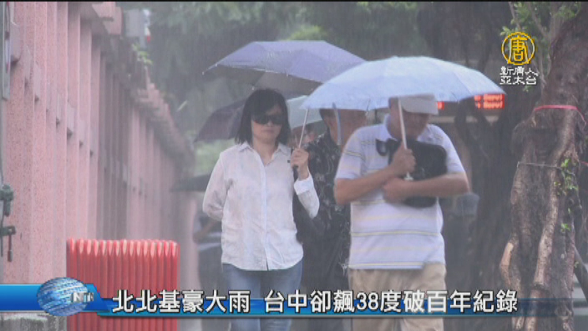 【新唐人亞太台 2017 年 10 月 08 日訊】國慶連假第二天,北部的觀眾朋友,有沒有感覺,今天天氣不太穩定?一下子風強雨驟,一會兒又出太陽,由於受到東北風和熱帶性低氣壓外圍影響,氣象局持續針對北北基8縣市發布豪雨特報,今天不只宜蘭大同鄉累積近400毫米的大豪雨。花蓮秀林鄉三棧溪,下午也傳出2人遭暴漲溪水沖走。不過台灣西半部,卻是晴朗炎熱的好天氣,台中甚至在今天下午2點3分,已經飆出38.3度的高溫,打破台中120年以來,十月的最熱紀錄。