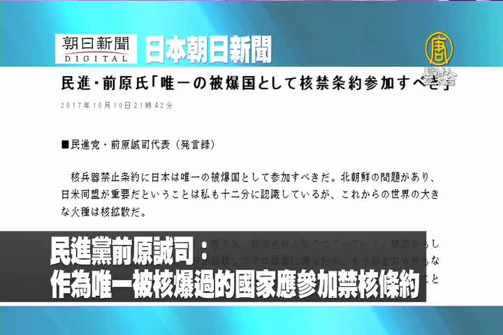 【新唐人亞太台 2017 年 10 月 11 日訊】來看到日本朝日新聞報導:日本民進黨前原誠司表示,作為唯一被核爆過的國家,應該參加禁核條約。