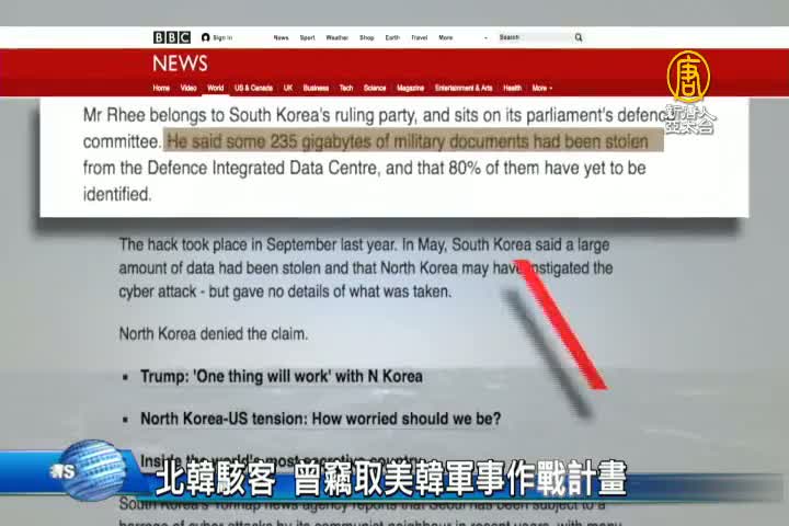 【新唐人亞太台 2017 年 10 月 11 日訊】有南韓議員披露,北韓駭客曾經竊取美國與南韓之間的軍事機密資料,其中就包括針對金正恩的刺殺行動計劃。不過南韓當局並未對此做出回應。